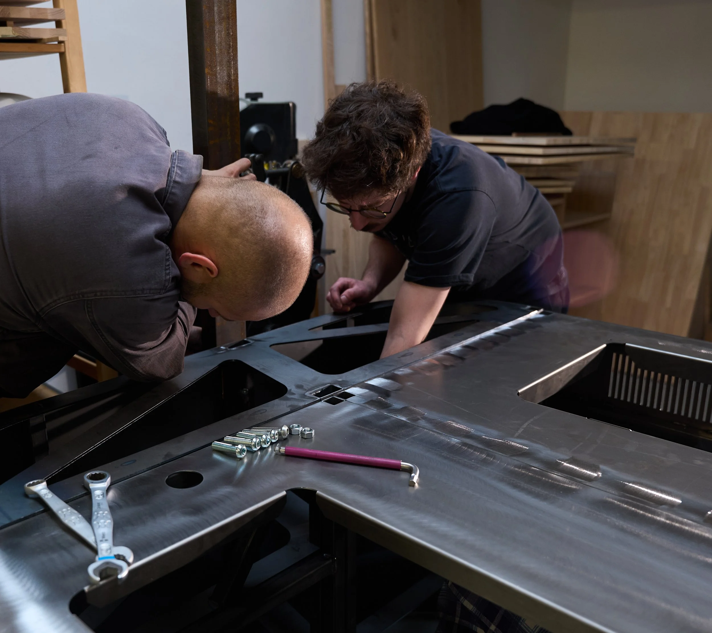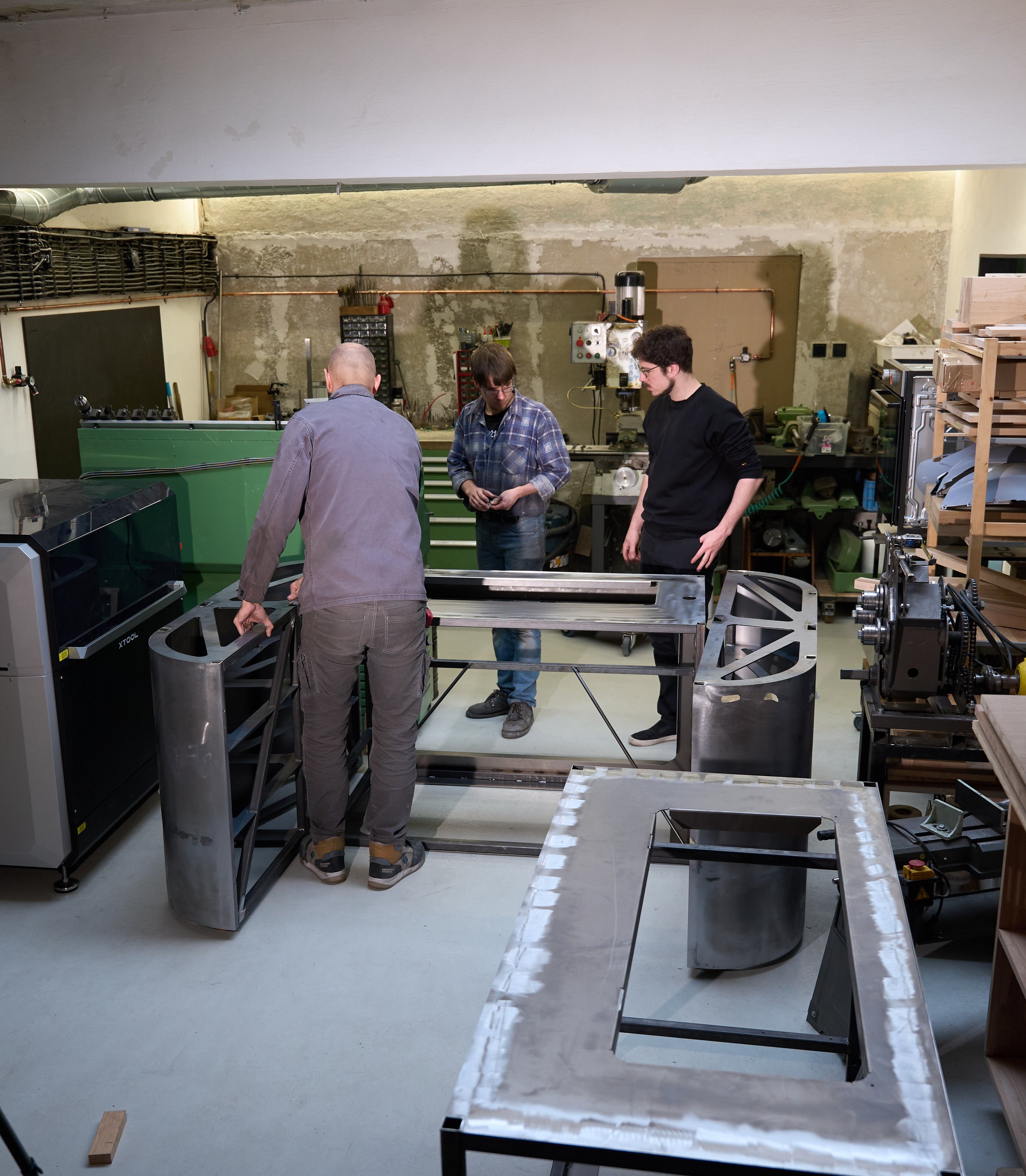 The structure is formed by a welded steel construction and finished with precisely applied powder coating, ensuring long-term durability and a refined appearance.